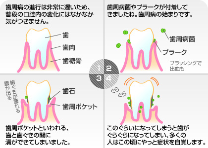 歯周病の予防には、むし歯予防と同様こまめにプラークを取り除き、歯周ポケット内を清潔に保つことで、歯肉の退縮を抑制することが大切です。